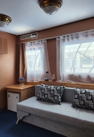В каютах 38, 40, 42-45, 47 – два дивана, один из них раскладывается (ширина 140 см), размещение до трех человек, два обзорных окна.