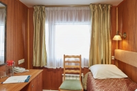 Одноместная каюта, расположенная на средней палубе №№ 52,54,55 . В каюте: односпальная кровать, санблок (умывальник, душ, туалет),гигиенический набор (шампунь, гель, шапочка для душа) телевизор, холодильник, регулируемое централизованное кондиционирование, фен, внутренняя телефонная связь. В каютах №№ 54,55 дополнительное место- диван(можно разместить только ребенка.)