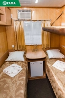 В каюте: два спальных места и одно спальное место верхнего расположения, душ, санузел, абсорбционный мини-холодильник, кондиционер, шкаф для одежды, радио.Категория 1Б