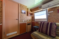 В каюте: одна односпальная кровать, одна двухъярусная кровать, душ, туалет, холодильник, телевизор, кондиционер, шкаф для одежды.